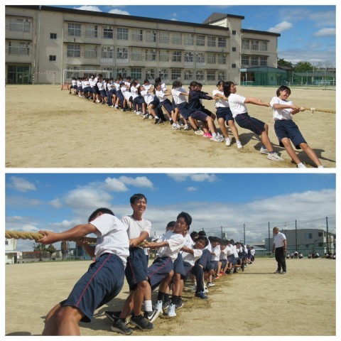 本日の1,2年生の体育大会学年練習の様子です。集合の確認や,競技のルールなどを確認しました。また,綱引きの練習も行い,体育大会に向けての気持ちを高めました!クラスが一致団結して,走って,応援して,声を出してと最高の体育大会になるよう取り組んでいます。応援お願いいたします!