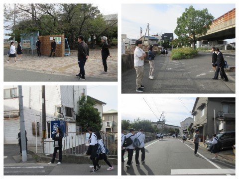 本日は「職員一斉登校指導」として,生徒の朝の登校状況を確認しました。「おはようございます!」と挨拶しながら生徒らの登校の様子をみたり,危険個所がないかなどの把握をしました。本日は朝から涼しく,一気に秋をを感じさせる気候となりました。