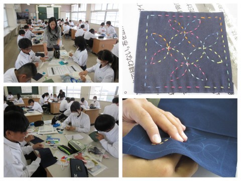 1年生 家庭科「裁縫~刺し子のコースター」
