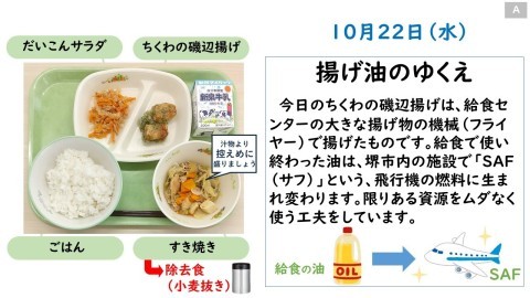 今日の給食は、「ごはん・牛乳・すき焼き・ちくわの磯辺揚げ・だいこんサラダ」です。