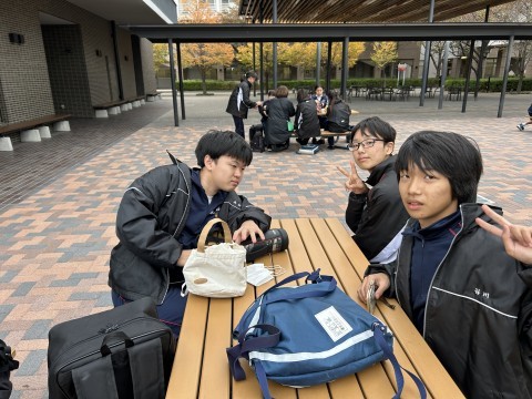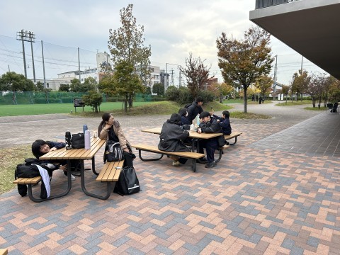 体験活動が終了し、お弁当を食べています。食べ終わったら電車に乗って浜寺中学校へ戻ります。