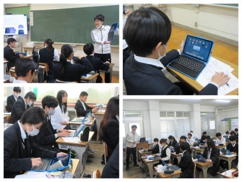 本日,GIGAスクール2期として生徒用端末の更新を行い,新しくipadが導入されました。最初の授業では「GIGA開き」という使い方の説明やパスコードの設定を行いました。新しい端末に生徒らはさらに学習意欲が高まったようで,アプリを開いたり調べ学習をしたり,生徒用端末としてのipadを十分に活用していました。