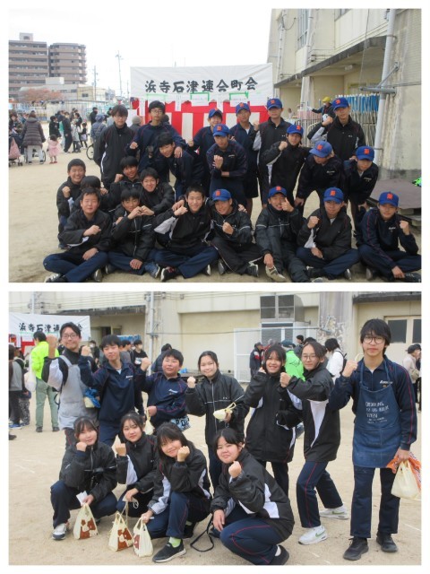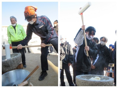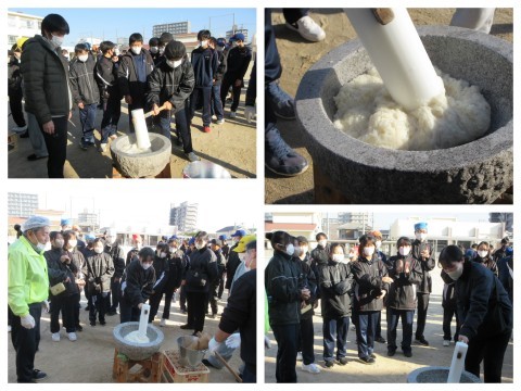 本日,浜寺中学校区青少年健全育成協議会の活動として「浜寺石津餅つき大会」に参加しました。地域の方々と一緒に餅をついたりこねたりして皆様と交流を深めました。「ヨイショー!」という掛け声とともに餅をつきながら,「ありがとう!」「力強いね!」とお話しいただき,心温まる餅つき大会になりました。このような活動を通して子どもたちの健全育成に取り組んでいます。ご理解,ご協力本当にありがとうございます。