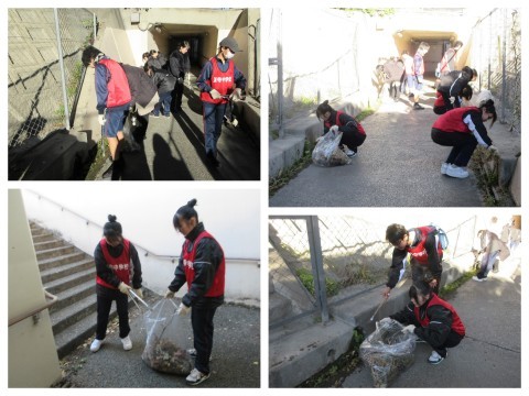 12月6日(土),7日(日)の朝,「浜寺東校区地域清掃」に浜寺中学校区健全育成協議会の活動として参加しました。主に通学路の地下道や四ツ池の周辺を重点的に清掃しました。地域の方々から「おはようございます!」「ありがとう」「ご苦労さん」と声をかけていただき,心温まる地域清掃となりました。平素は子どもたちの健全育成にご理解・ご協力いただきありがとうございます。