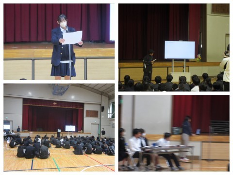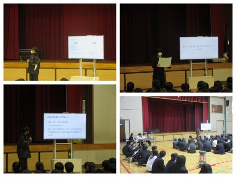 自分がなりたい仕事や気になる仕事を調べていく中で自分の将来について考える一助になっていました。発表者もいろんな思いを持ちながら、悩みながらも様々なことを伝えていました。また、発表者を聴く生徒のまなざしは真剣という言葉がぴったりでした。
