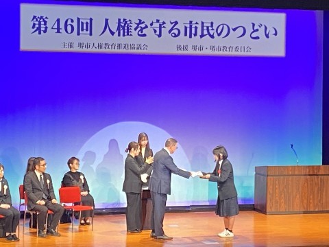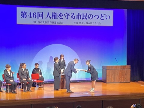 12月7日(日)堺市総合福祉会館にて堺市人権教育推進協議会主催の「第46回私からの人権メッセージ」の表彰式がありました。
