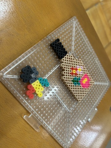 つくし学級では1月のカレンダーに使用するデザインをアイロンビーズで制作しています。羽子板をはじめ新年に関わるものを様々な色を使って考えています。完成が楽しみです。
