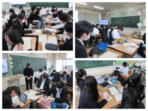 本日の3年生の国語の授業です。資料は「それでも、言葉を」でした。「言葉の二極化の現状をどう捉えているかについて理解することが重要です。現代社会では、言葉が「二極化=分かりやすさ・反応の速さ」に偏り、「価値」の分断ともつながっている。」と筆者は指摘しています。「言葉の二極化」に対する筆者の問題提起と「言葉の厚み」への再評価を読み取るため,浜中クローバーで他者の意見を聞きながら自分の意見を整理していました。