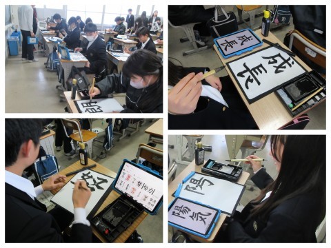 本日の3年生の国語の授業は書写でした。それぞれのテーマが「自分の抱負」という内容で書きました。「希望」「成長」や「陽気」など,前向きな言葉で自分を表現していました。空白部分などの字のバランスを考えながら一生懸命に取り組んでいました!