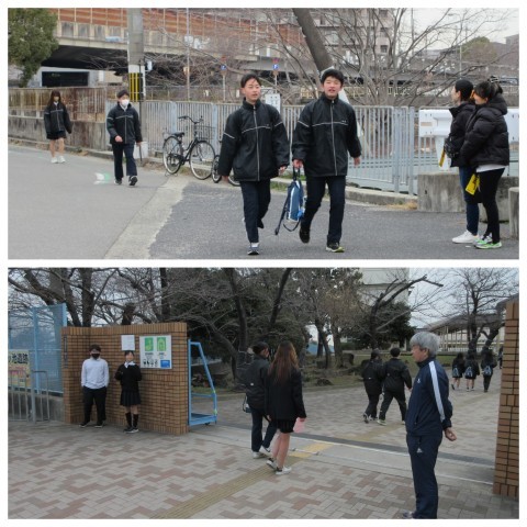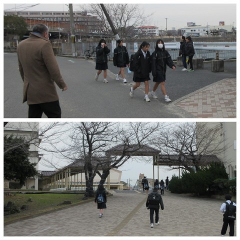 本日の朝の登校風景です。本日はPTA活動として朝のあいさつ運動も行いました。生徒の皆さんの「おはようございます!」という元気な挨拶で,とても気持ちの良い朝のスタートとなりました。ありがとうございます。また,PTAの皆様にも正門に立っていただき,子どもたちの登校状況も確認しました。ありがとうございます。本日もよろしくお願いいたします。