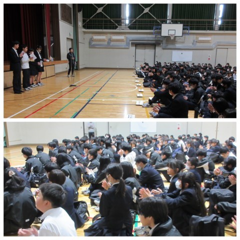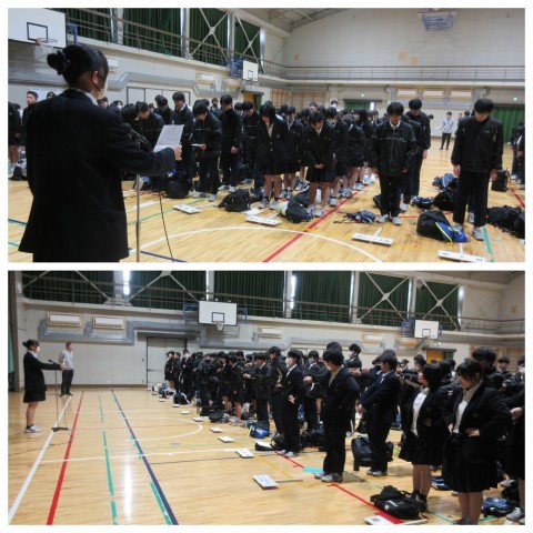 本日は,学年末テスト3日目でした。最終日という事もあってか,最後のテストが終わると「やっと終わったー!」という声がクラスで聞こえてきました。本当にお疲れさまでした。テストが終わったあと,「部活動総会」が開催されました。部活会の代表者が浜寺中学校の部活動生としての心意気や抱負など話してくれました。また,各部活動からは活動報告やこれからの目標なども話をしてくれました。応援どうぞよろしくお願いいたします!