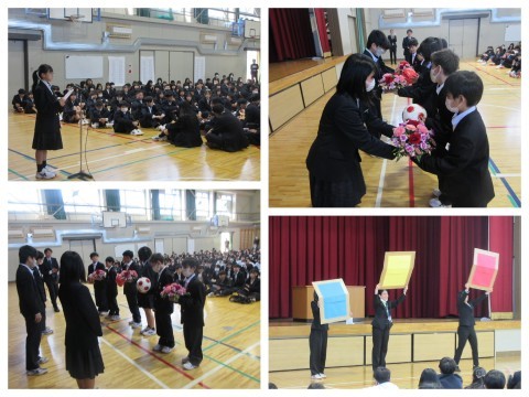 本日,「令和8年度 1学期始業式」を行いました。新年度最初の登校日ということで,クラス替えがあったりと新しい環境での学校生活が始まるスタートの日となりました。校長先生からは「新年度,学校生活をしっかりと頑張っていきましょう」というお話がありました。また生徒指導主事からはSNSなどの関わり方や学校生活へのお話がありました。他,「着任式」「職員紹介」「対面式」や表彰伝達等がありました。本日は素晴らしい青空が広がる天気のような,清々しい気持ちで新年度が始まりました。今年度も学校,家庭,地域の皆様と共に子どもたちの健全育成に取り組んでいきたいと思います。ありがとうございます。どうぞよろしくお願いいたします。