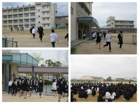 本日,全学年を対象に避難訓練を行いました。地震,そして地震による火災の総合防災訓練です。避難経路の確認や,集合点呼の練習です。浜寺中学校は避難所に指定されており,災害時には取るべき行動などの確認を行いました。子どもたちは真剣に訓練に取り組み,しっかりと行動できていました。