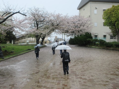 本日は朝から雨が降り、桜の花びらがたくさん地面に落ちていました。