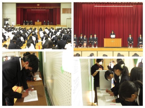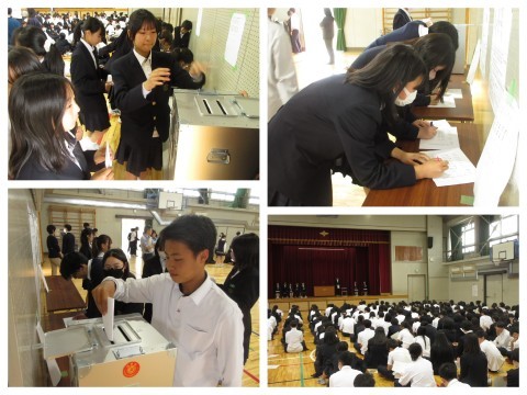本日,「令和8年度 前期生徒会選挙」を実施しました。生徒会会長,副会長および運営委員を選挙によって選びます。実際に使われている投票箱を選挙管理委員会から借りてきました。「主権者教育」の観点で取り組んでいます。立候補者がそれぞれ演説し,抱負を話しました。「学校を良くするために頑張ります」という気持ちを込めて立候補してくれました。ありがとうございます。生徒会活動を通じて「生徒が主体的な学校生活」を推し進めています。
