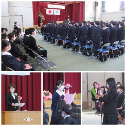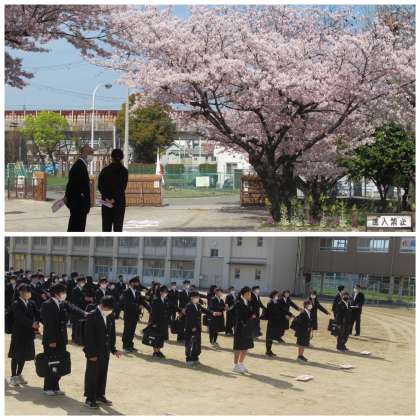 桜が舞う青空のもと、「第76期生 入学式」を挙行しました。新しい制服に身を包み、心も晴れ晴れとした新しい気持ちの中、浜寺中学校へのご入学、おめでとうございます。国歌斉唱と学校長式辞のあと、在校生代表による「歓迎のことば」、新入生代表による「誓いのことば」がありました。それぞれ立派に代表としての言葉を言ってくれました。また、教職員の紹介、吹奏楽部の歓迎演奏もありました。