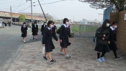 本日は、朝からさわやかな風が吹き、過ごしやすい気候となりました。先週の始業式のあと、今日から6時間授業となっています。本日の朝の登校風景です。元気よくあいさつをしてくれ、とても気持ちの良い朝となりました。