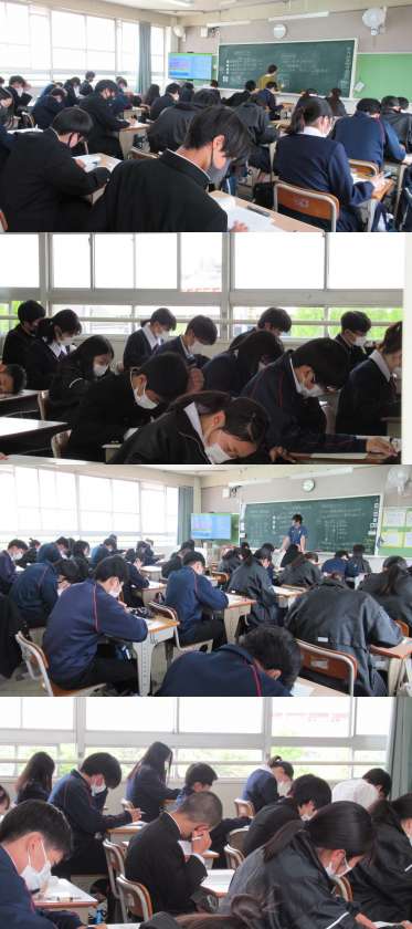 今日は3年生が「全国学力・学習状況調査」の教科に関する調査(国語・数学・理科)と生活習慣や学習環境等に関する質問紙調査を行っています。