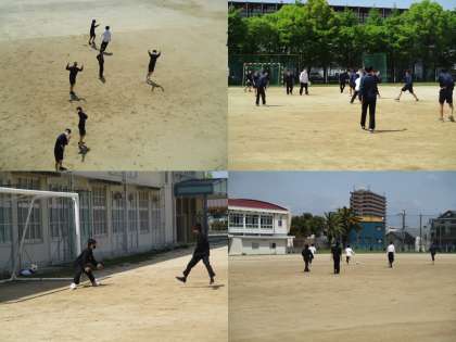 第1グランドでは2年生が第2グランドでは3年生がサッカーをしています。