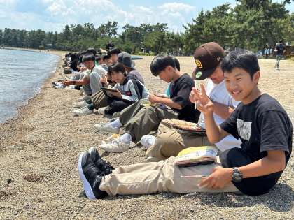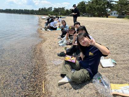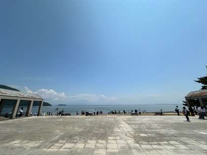 琵琶湖を目の前に昼食です。天気も良く、開放感溢れる素晴らしいロケーションで、滋賀を楽しんでいます。