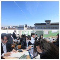 2年生の美術の授業です。授業内容は「木彫〜鍋敷きを作ろう〜」でした。それぞれ自分の創作のデザインを丸板に書き、彫刻刀で彫っていきます。デザインによっては難しいものもありますが、工夫して板を彫っていました。生徒らは、本時の目標「既習の知識や経験、材料や用具の特性を生かし、意図に応じて自分の表現方法を追求して創造的に表すことができる。」を意識しながら授業に取り組んでいました。出来上がりを楽しみにしておいてください!