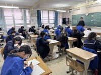 3年生は朝早くから学校に来て、教室や廊下のロッカーを机代わりに学習している生徒がたくさんいました。みんな、応援してます、頑張ってください!