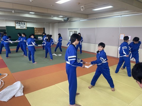 帯を使って相手の重心をコントロールする練習をしています!試合形式で楽しそうでした!