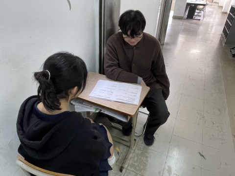 2年生のフロアでは教育相談が行われていました。勉強の話や部活の話、趣味の話で盛り上がっていました。