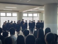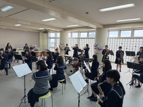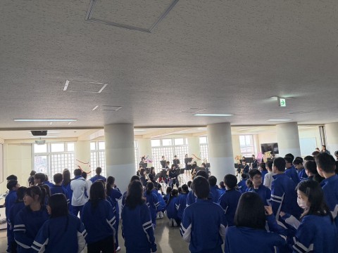 吹奏楽部の演奏で1年生のフロアを盛り上げてくれています。