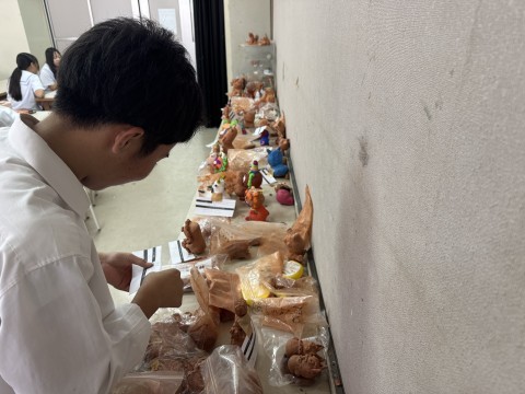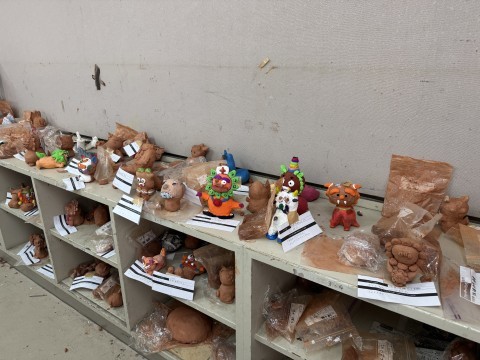 シーサーづくり、完成品が続々と並べられています!