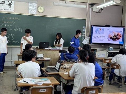 調べた料理について英語で発表しています。