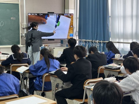 その後、生徒が電子黒板に答えを書いて、みんなで確認です。