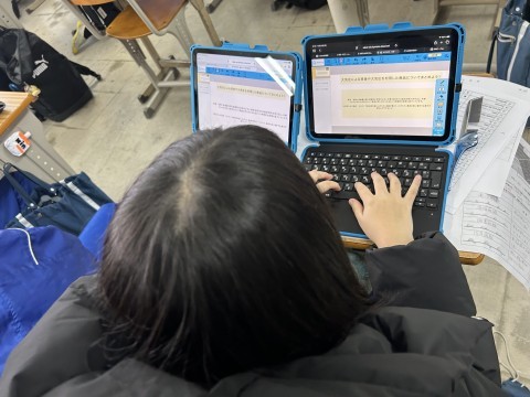 理科 大気圧による現象等、各自で調べてone noteにまとめていました。みんなの意見を見ながら、成果物を練り上げてください