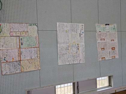 クラスの班対抗で、廊下に貼られた絵を記憶して班のメンバーに言葉で伝えて、絵を完成させる記憶力とコミュニケーション力のゲームが行われています。