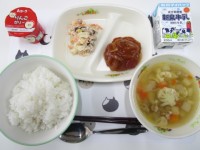 給食の配膳室前のピーク時間帯はこんな感じになります。
