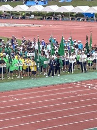 本校小学校3校区の子どもたちも、参加しています。曇り空で、時折晴れたり小雨の天気ですが、怪我のないように頑張ってほしいと思います。