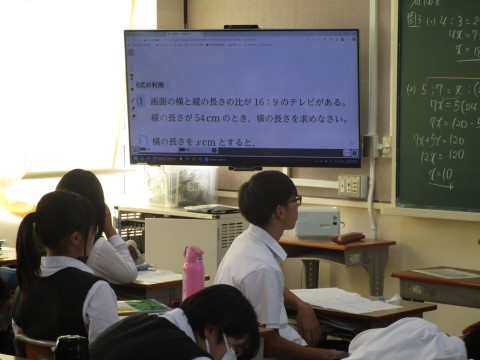 ■比例式の性質 ~1年3組 数学~ 公開日 2025/10/14 更新日 2025/10/14 学校 a: b = c:d ならば ad = bcというのが比例式の性質として成り立ちます。このことを活用して,方程式を立式し解を求めていきます。基本的な性質として覚えておけば,これからの数学の学習に大きく役に立ちます。