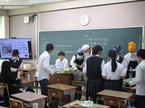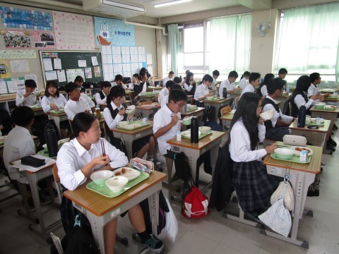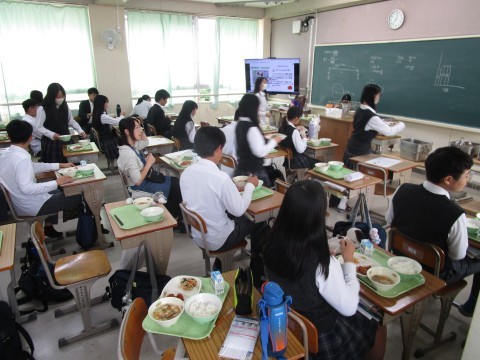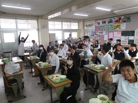 今日の給食には「ヤンニョムチキン」が出ました。韓国料理で,甘辛いたれのかかった唐揚げのような感じです。