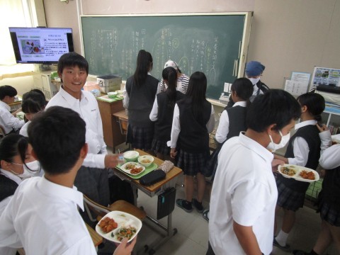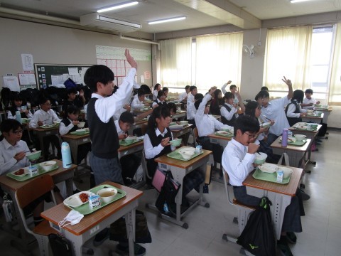 今日の給食には「ヤンニョムチキン」が出ました。韓国料理で,甘辛いたれのかかった唐揚げのような感じです。