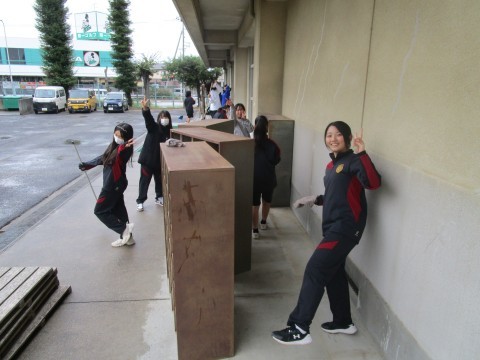 あまり掃除するようなところではないので,ほこりや砂がたくさんたまっていましたね。女子バレーボール部の子どもたちがきれいにしてくれています。