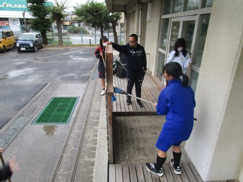 体育館周辺の「すのこ」を上げて清掃活動してくれています。
