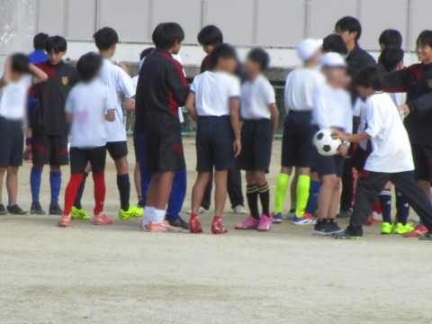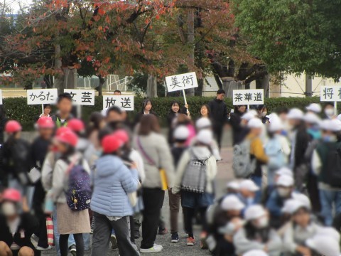 続いて部活動体験の様子です。授業が終わり,再度体育館前に集合しての移動です。