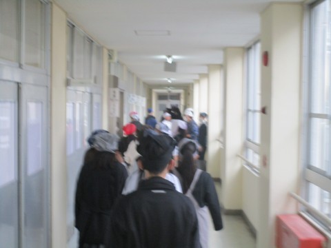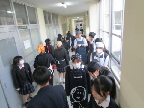 配膳室前の廊下に給食係の子どもたちが戻ってきました。今日から6時間授業です。3連休明けということもあってか,マスクやエプロンなど忘れ物が少し目立ちます。明日はしっかり持ってくるようにしましょう。