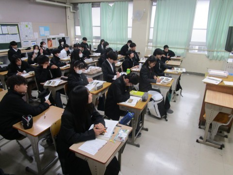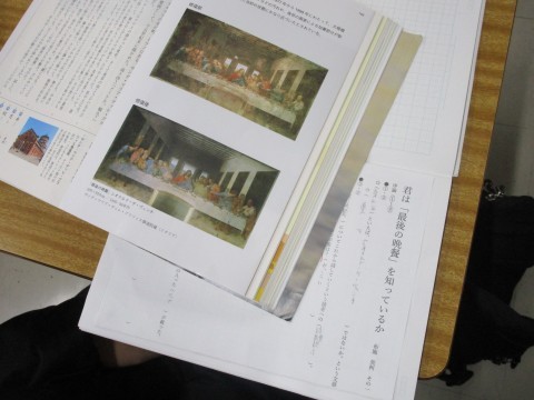 ■君は『最後の晩餐』を知っているか ~2年5組 国語~ 公開日 2026/01/13 更新日 2026/01/13 学校 「君は『最後の晩餐』を知っているか」という,美術に関する評論文の学習ですが,今回の授業ではまず本文の事実の確認(要約)を行っていました。まずは書かれてある内容をしっかり押さえて,筆者の考える新しい見方や,自分自身の考え方を煮詰めていきます。