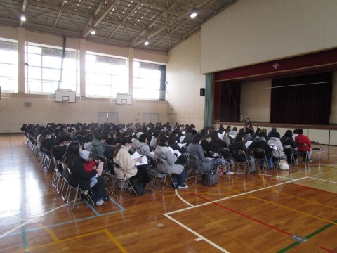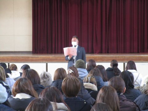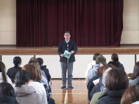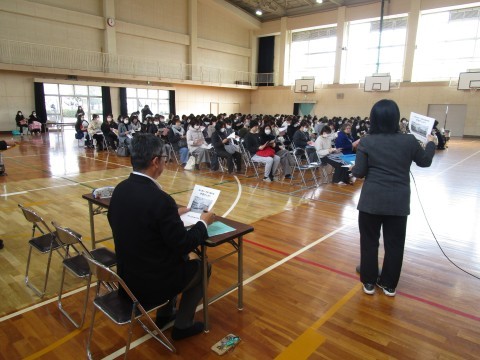 校長・教務・生徒指導・保健室の順にお話をさせていただきました。少し寒さが緩んだとはいえ,ご来校いただいた保護者の皆様,寒い中ありがとうございました。お子様のご入学を楽しみにしております。