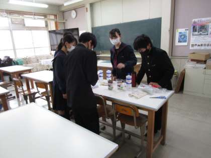 美術部では、4月に「ごみ減量ポスター展」、5月からは「部展」に向けて絵を描いています。部活動の初めにはデッサンを行っています。