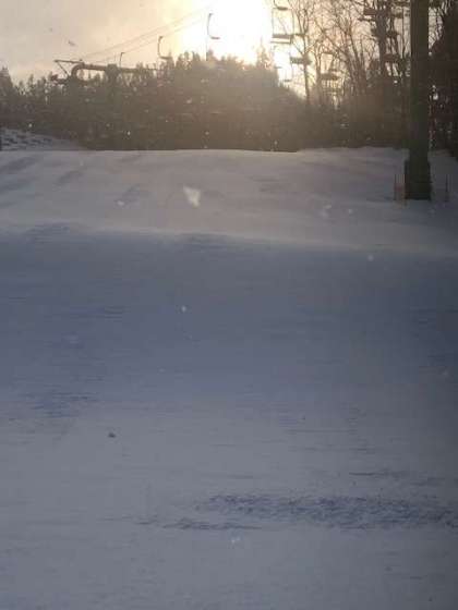 講習がまもなく始まります。快晴ですがゲレンデはバリバリアイスバーンです。ケガのないように。