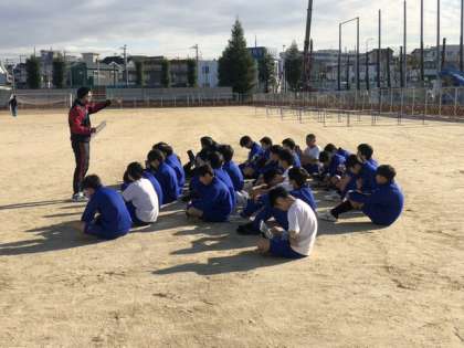 グラウンドではハードルの練習をしています。タブレットを使用し、ハードルを越えるときのフォームの確認をしていました。