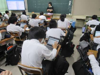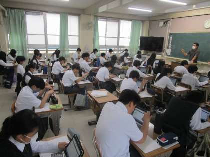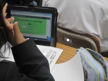 本日、IRT調査を1年生で実施しました。質問紙・国語・数学です。一生懸命にタブレットに向かっています。