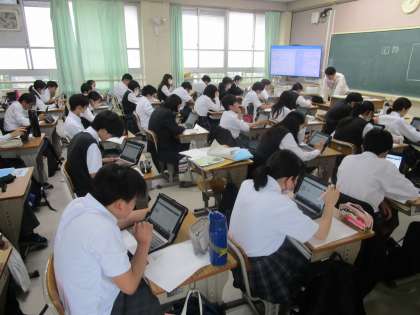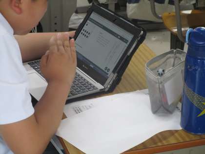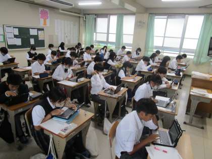 本日、IRT調査を1年生で実施しました。質問紙・国語・数学です。一生懸命にタブレットに向かっています。